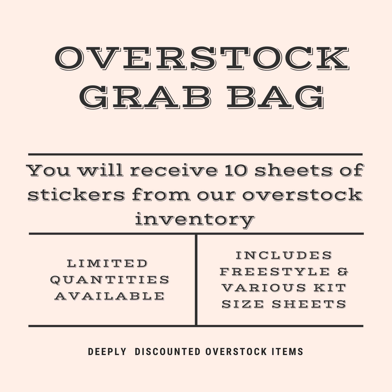 Head on over to the Etsy shop, which I temporarily opened just to list our grab bags. Each grab bag has 10 sheets of stickers from our recently retired collections. Also available are Fashion Doll grab bags which contain 10 dolls each in our doll duo sized (larger dolls) or our standard sized dolls in fair and dark skin tone. Click here or the button below to shop.