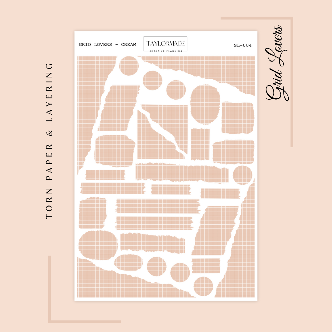 GL004 - Cream - Grid Lovers Torn Strips and Layering