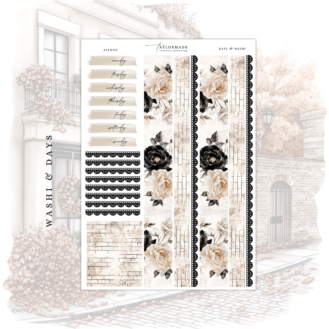This weekly kit is sized for standard 1.5 inch vertical planners but can also fit a variety of planner types.