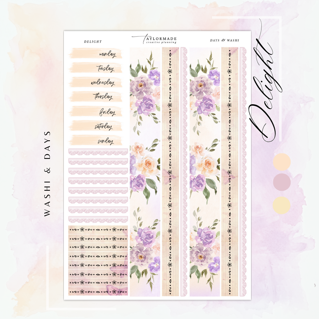 This weekly kit is sized for standard 1.5 inch vertical planners but can also fit a variety of planner types.