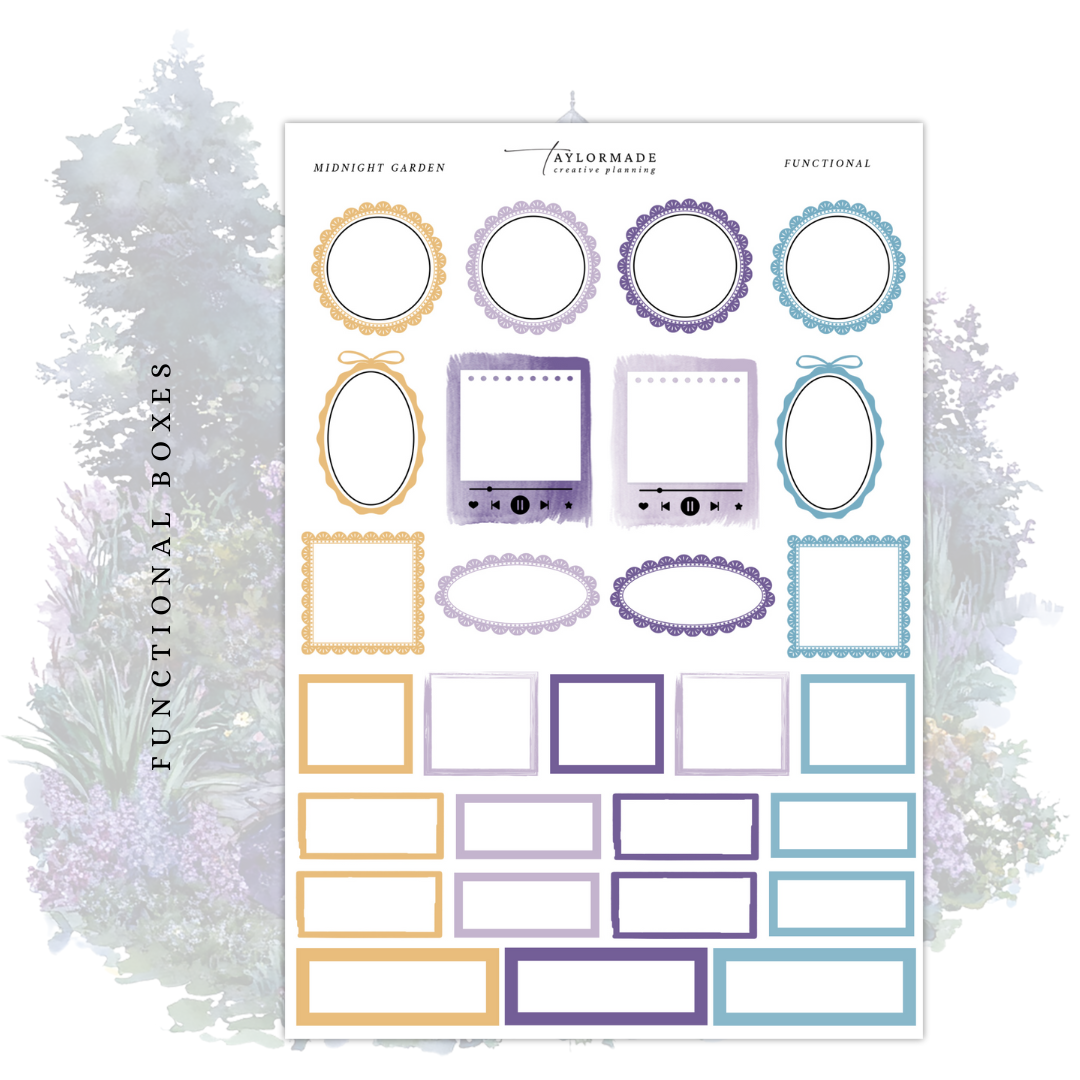 Each sticker sheet in this four page kit measures approximately 4.75" x 7".   The black areas on the digital images will be foiled.