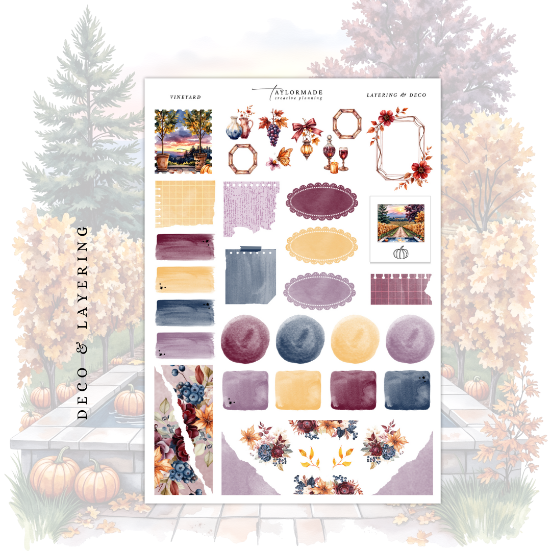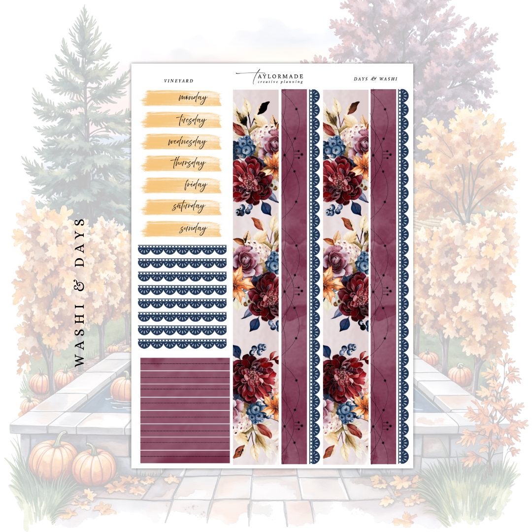 This weekly kit is sized for standard 1.5 inch vertical planners but can also fit a variety of planner types.
