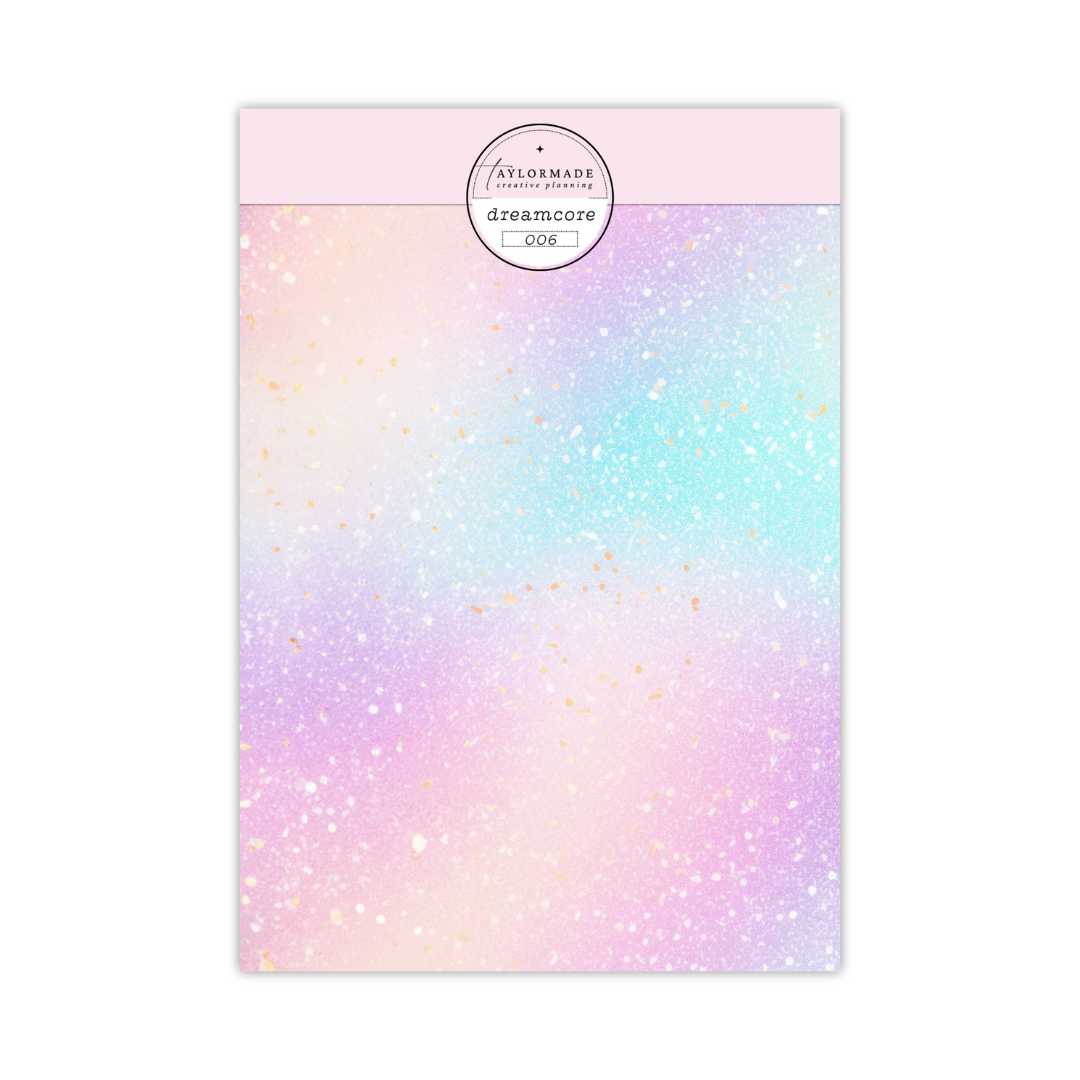 Dreamcore is part of our new junk journaling and ephemera collections. This futuristic themed collection includes 3 sheets of mixed media deco and 3 sheets of tearable (if bought on washi paper) pattern .