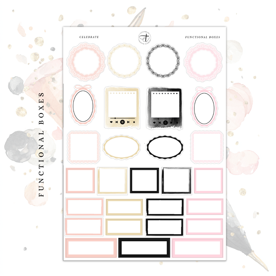 Each sticker sheet in this four page kit measures approximately 4.75" x 7". The black areas on the digital images will be foiled.