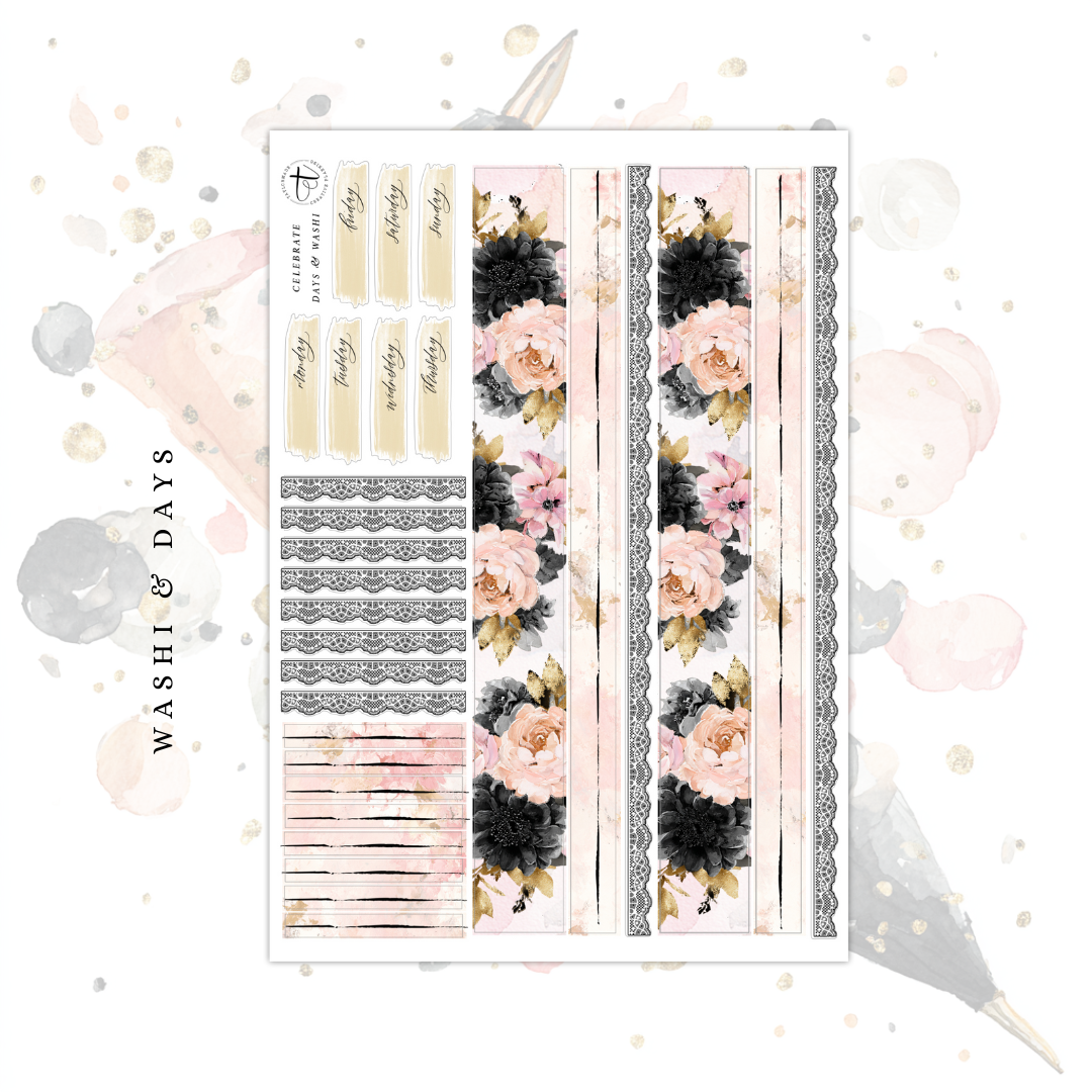 This weekly kit is sized for standard 1.5 inch vertical planners but can also fit a variety of planner types.