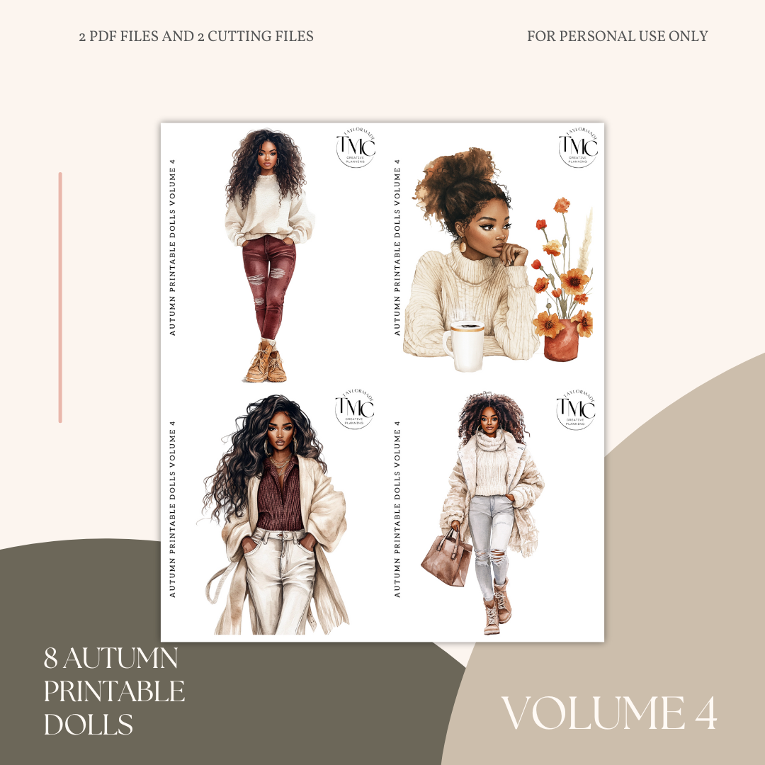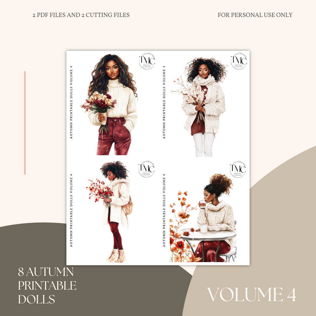 You will receive: 1 Zip file containing 8 dolls on 2 PDF files and 2 Silhouette cutting files. These files are for personal use only.