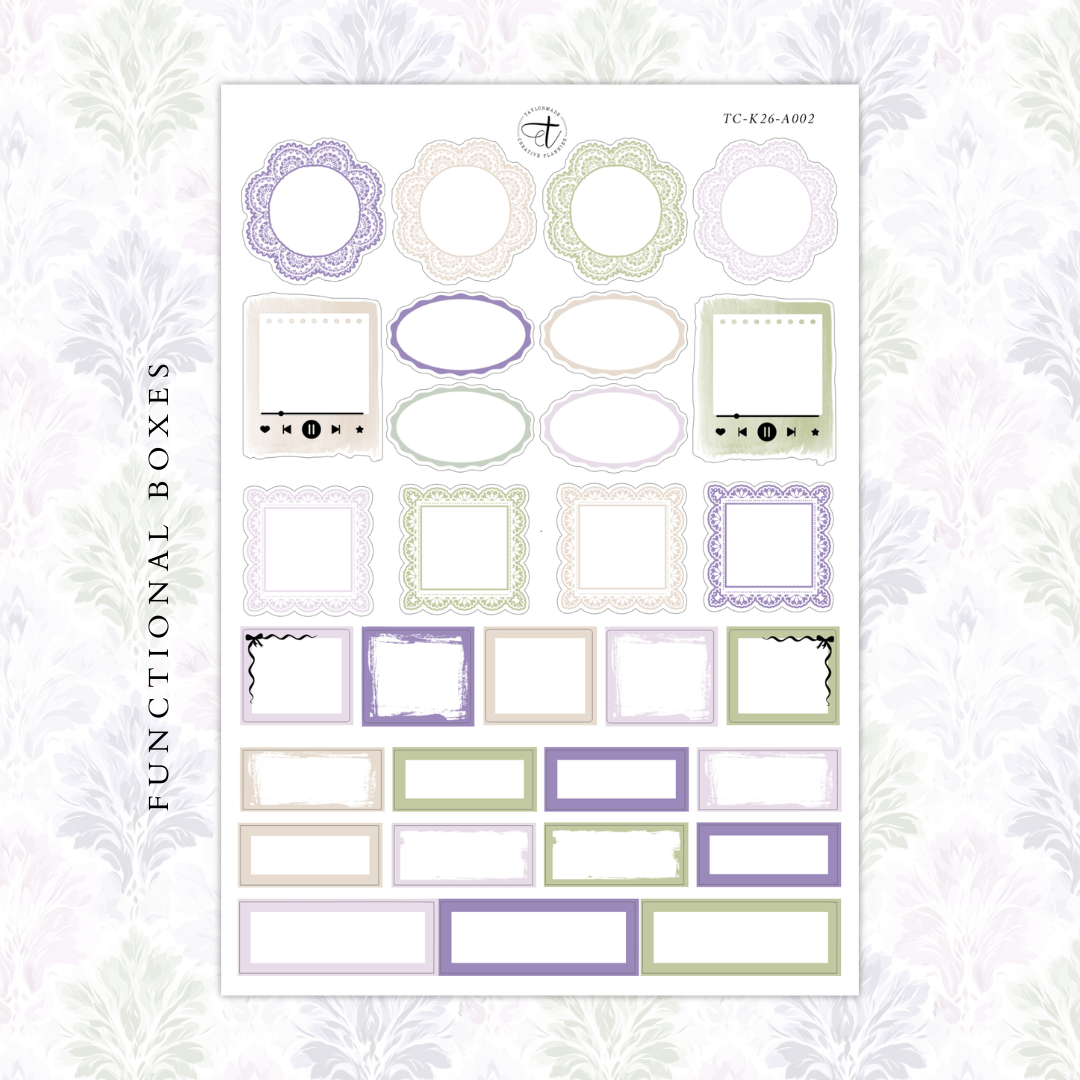 Each sticker sheet in this four page kit measures approximately 4.75" x 7". The black areas on the digital images will be foiled.