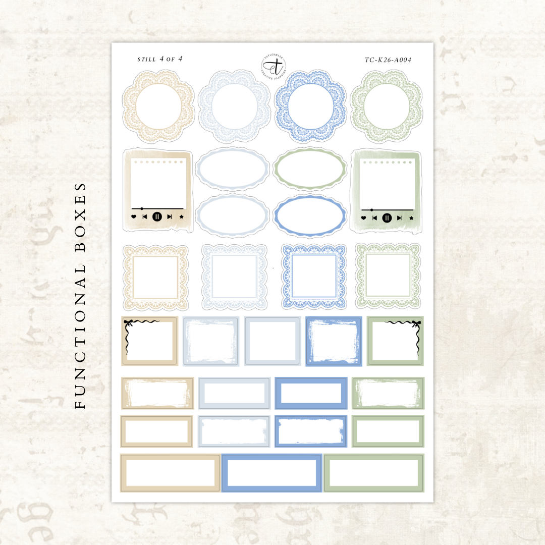 Each sticker sheet in this four page kit measures approximately 4.75" x 7". The black areas on the digital images will be foiled.